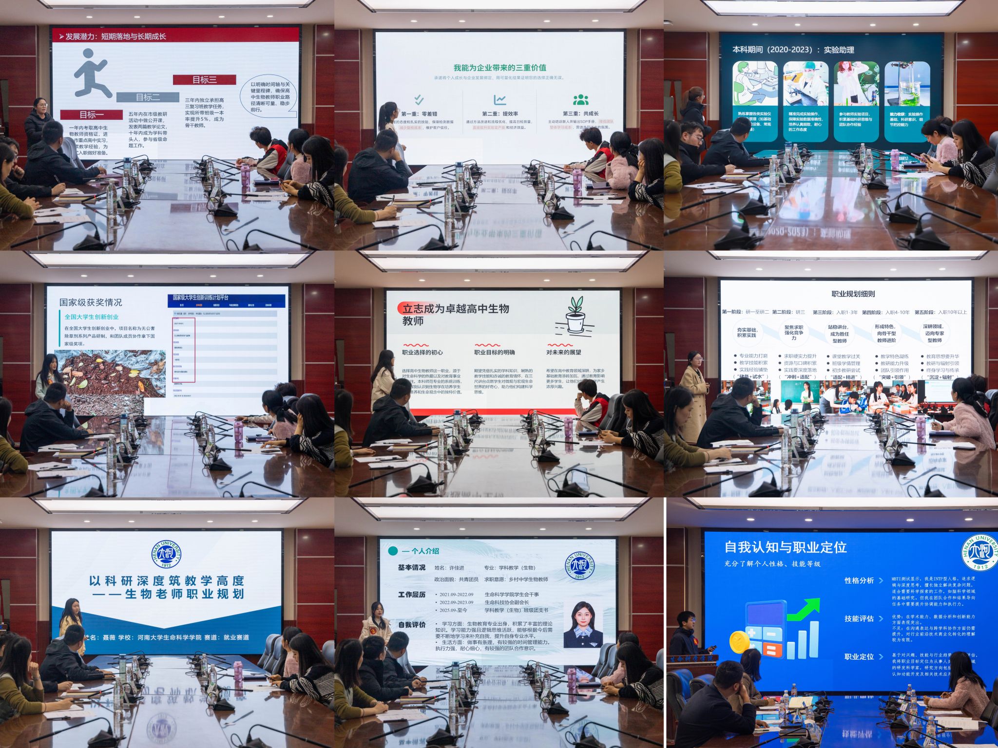 经过学院评审委员会对报名作品的初审,确定32名同学参加成长赛道、19名同学参加就业赛道角逐。同学们立足自身专业基础,结合兴趣志向,以清晰的逻辑、详实的数据全方位剖析自我,从个人分析、职业认知、发展规划与路径实施、评估调整等几个方面汇报自身成长与实践经历,展示职业规划和就业展望,突出了契合时代要求、发挥个人特长的职业目标。同学们“不驰于空想,不骛于虚声”,将个人理想与生活现实有机结合,有深耕教育,逐光筑梦的大中小学教师;有探秘生命,研创赋能的生物科研人员;有扎根生态,守护自然的行业践行者;有对教育事业的热忱,也有对科研领域的执着,充分展现了当代大学生在职业规划方面的多元化思考。