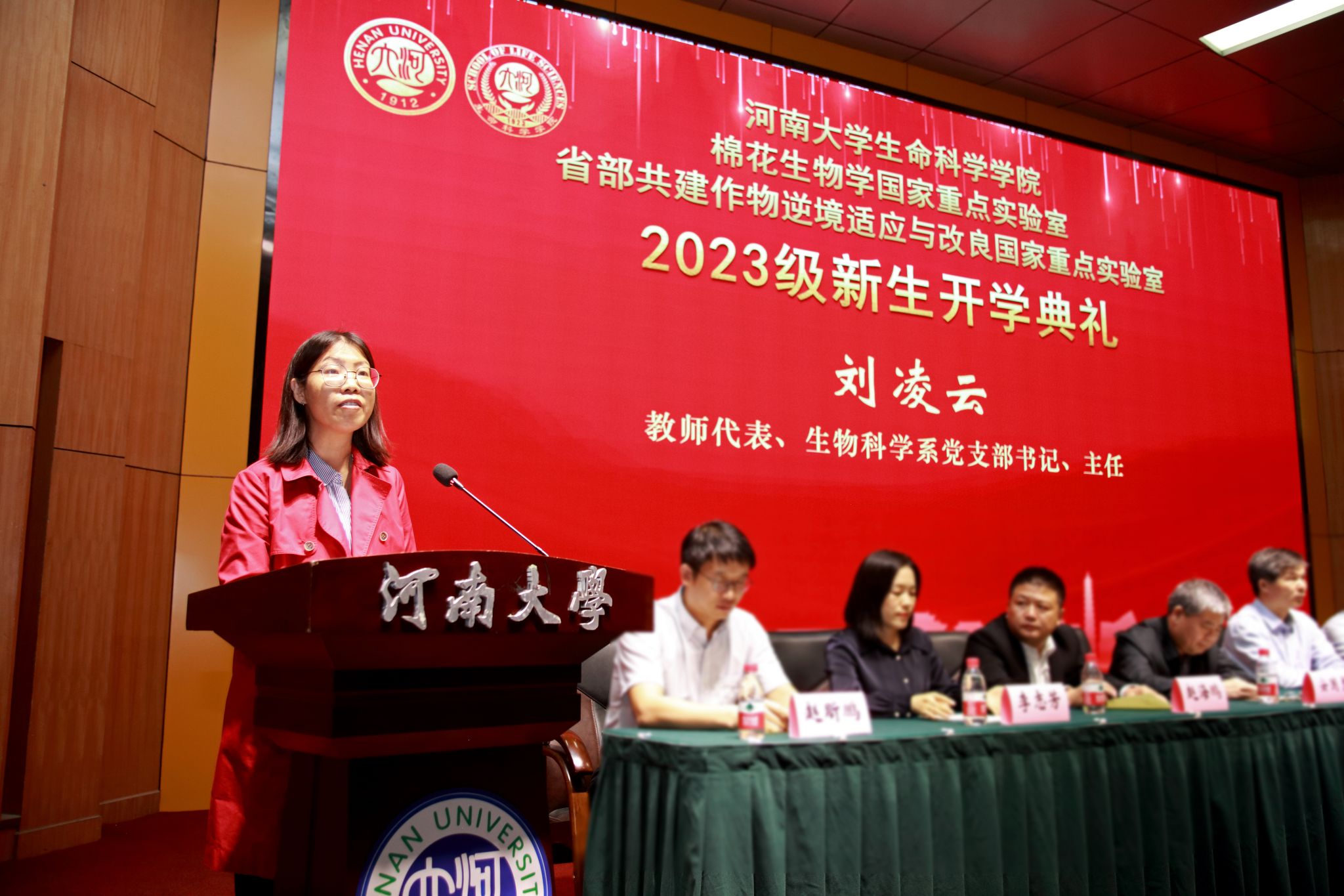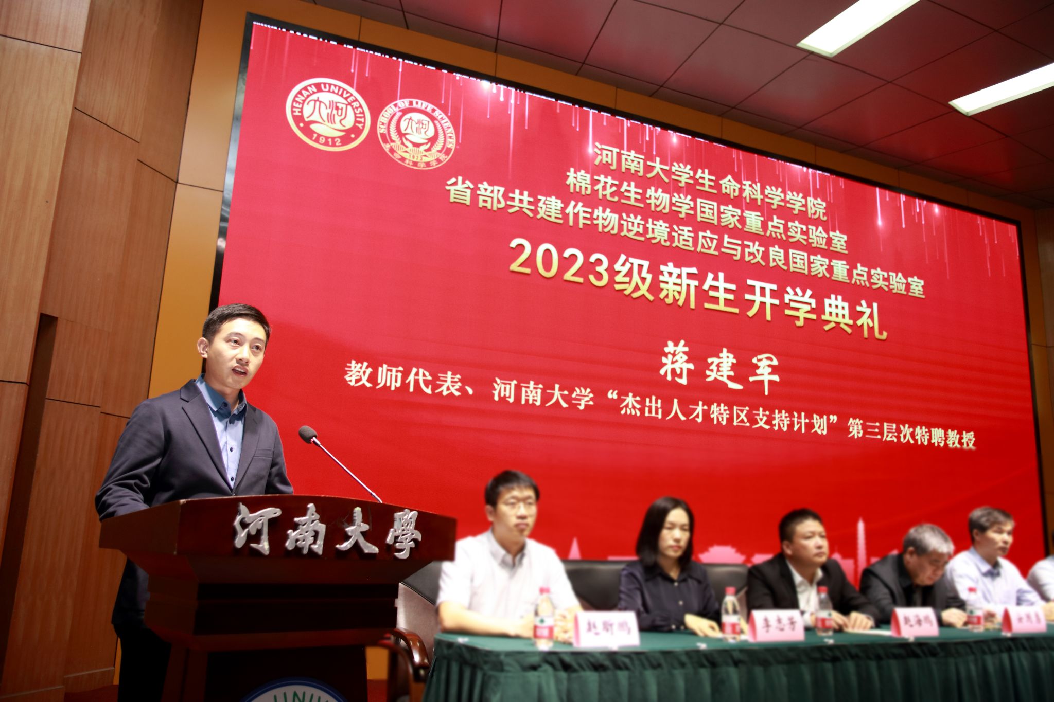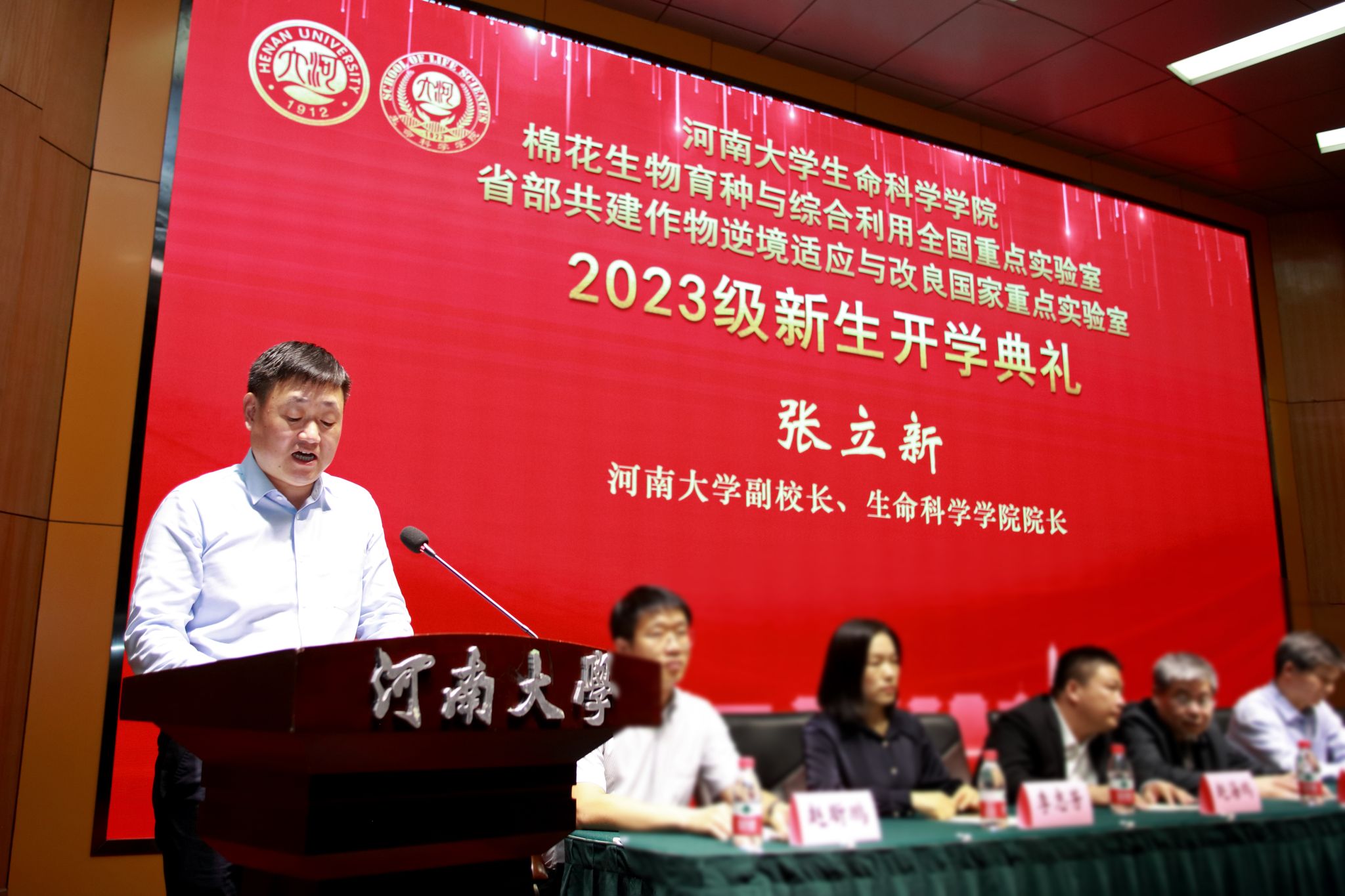 365英国上市网站官网副校长、365英国上市网站官网院长张立新教授致辞。他代表学院、重点实验室向来自五湖四海的2023级新同学表示热烈欢迎,详细介绍了河大生物学是世界一流、接续奋斗的学科,河大生科院是名师荟萃、成绩斐然的学院。他指出,河大生物系自1987年重建,一路高歌、硕果累累,经过一代代生科人的筚路蓝缕、团结奋斗,从“一个课题,两个老师,三间房子”,已然发展成百花齐放、实力雄厚的一流学科,成为全国领域内的后起之秀、一朵奇葩。他希望同学们传承和发扬“学无止境、境如生命”的生科文化,一是要胸怀“国之大者”,自觉肩负起为中华民族伟大复兴奋斗的青春使命,成为祖国栋梁;二是要自律自省,把握自己、珍惜当下,用奋斗的汗水迎接成功的喜悦;三是要学习创造,用具体回答焦虑,用笃定回答变化,用经历回答迷茫,用创造回答远方,立志成为一名优秀的生科人。