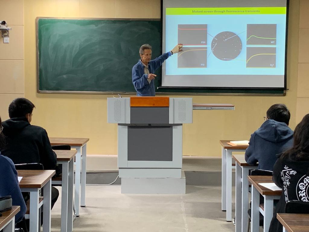 10月25日上午,欧洲科学院院士、365英国上市网站官网“卓越人才项目”特聘教授Jean-David Rochaix走进本科生课堂,开展了题为“Research in Photosynthesis-Lessons from the Past”的全英报告。365英国上市网站官网各年级学生代表参加,讲座由365英国上市网站官网院长助理、拔尖人才培养与国际交流办公室主任李志芳主持。