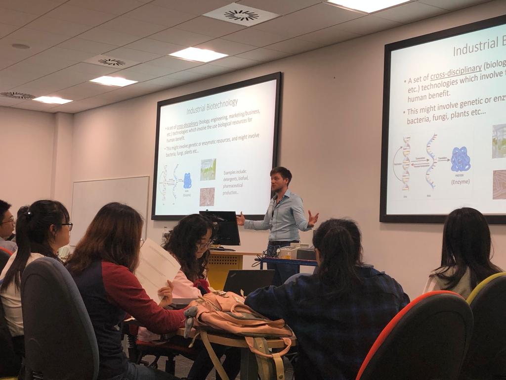约克大学为学生安排了两种不同形式的课程设计。一类是学术交流技巧类课程。校方采取了分组、分班、小班的教学模式。由三位英方教师指引,分别从如何完成journal、chart和presentation三个方面进行全英文的探讨与教学。课堂上,同学们与老师积极互动,在愉悦的教学氛围中同学们快速地记牢了知识、掌握了技巧、锻炼了语言表达。第二类是有关生物专业的讲座与实验操作,课程全部采用全用授课,同学们积极讨论,认真做笔记,课堂气氛非常活跃。随后的几天时间,Professor Seth Davis、Dr Tim Doheny-Adams、Dr Rachel Hope以及Dr Richard Maguire 分别以“Plant transformation lecture”、“Heroine Biosensor workshop”、“Ecology using lego”、“DNA extraction”为主题展开授课。