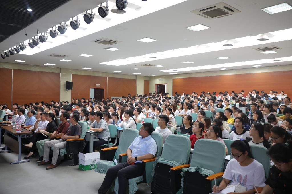 为深入学习贯彻习近平新时代中国特色社会主义思想,引导学院师生用习近平新时代中国特色社会主义思想武装头脑、指导实践,以高质量党建引领高质量发展。6月6日下午,365英国上市网站官网特邀中共北京市委党校孙宁研究员作《不忘初心,牢记使命——习近平新时代中国特色社会主义思想概述》专题报告。学院全体师生党员、入党积极分子、主要学生干部与会学习,报告会由365英国上市网站官网党委书记赵东保主持。