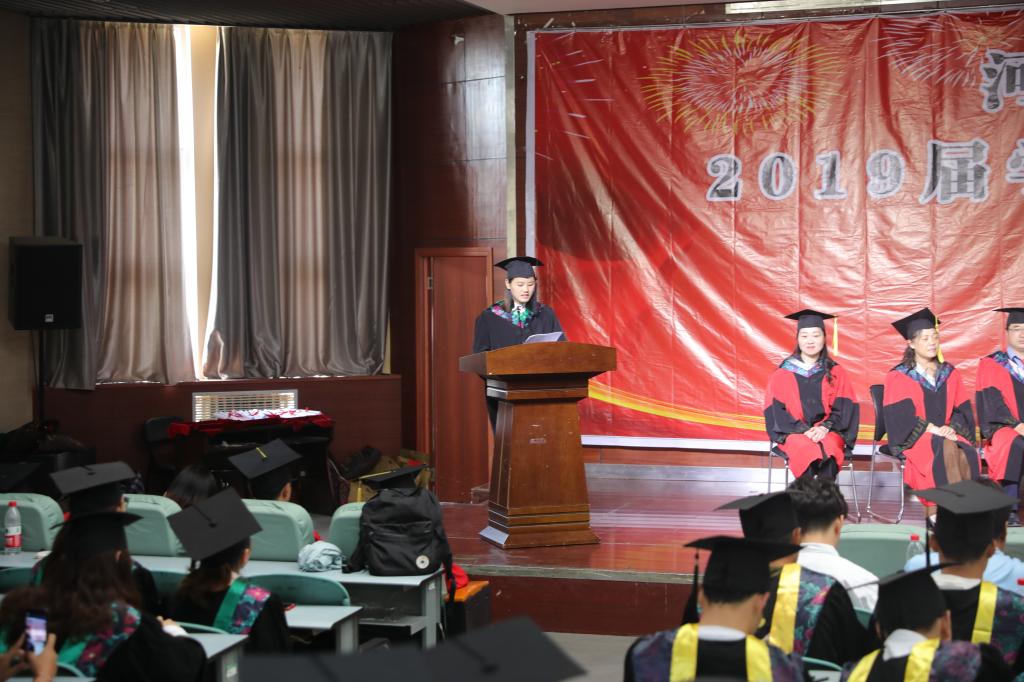 毕业生代表2015级植物科学与技术专业许玲玲同学发言,她深情地表达了对学校的依恋和对师长的感谢,牢记校训,永记院风,谨遵师训,归来仍是少年。在校生代表2016级生物工程专业黄洪潺同学发言,他感慨时光飞逝,对即将离校的学长学姐们充满不舍,满怀祝福。