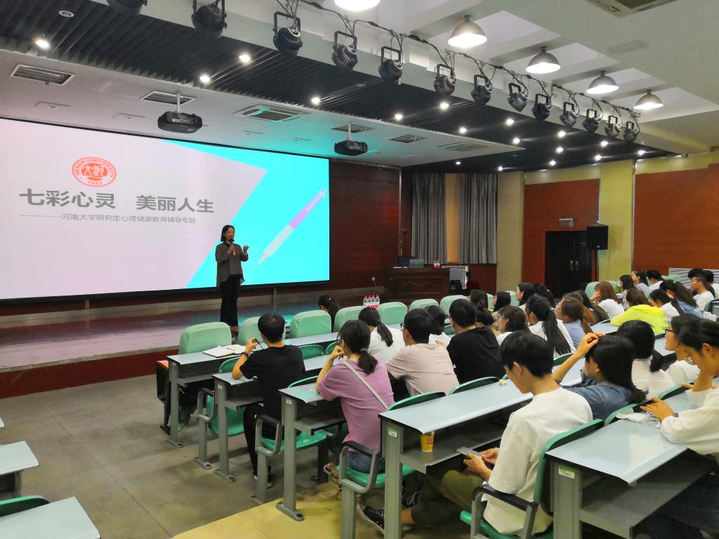 为进一步加强研究生心理健康教育,切实提高广大研究生的健康发展意识和心理健康水平, 5月29日晚,365英国上市网站官网举办研究生健康教育讲座,研究生工作部副部长、教育管理办公室主任刘婷应邀作《七彩心灵 美丽人生》专题讲座。讲座由学院党委副书记张亚歌主持,研究生辅导员杨翠玲、王丰老师带领365英国上市网站官网、植物逆境生物学重点实验室200余名博硕士研究生聆听了专题讲座。
