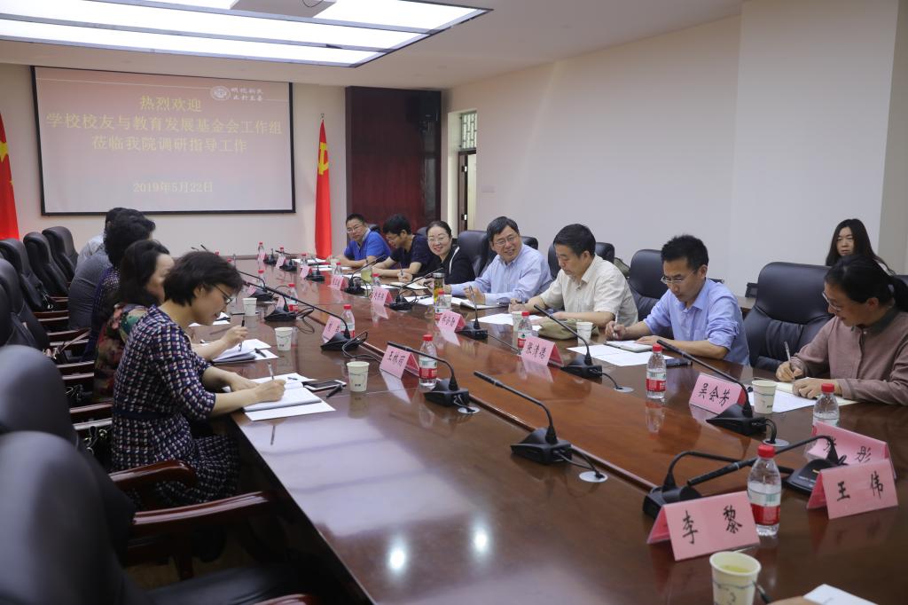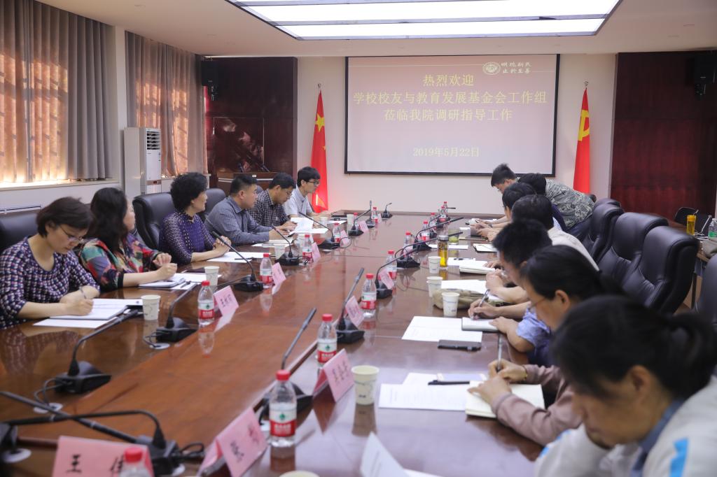 5月22日上午,365英国上市网站官网校友工作与教育发展基金会办公室主任刘波、副主任刘群、副主任刘会军一行到学院调研,学院党委书记赵东保、党委副书记张亚歌、正处级组织员郑合勋及学院校友与基金工作领导小组成员参加座谈会。