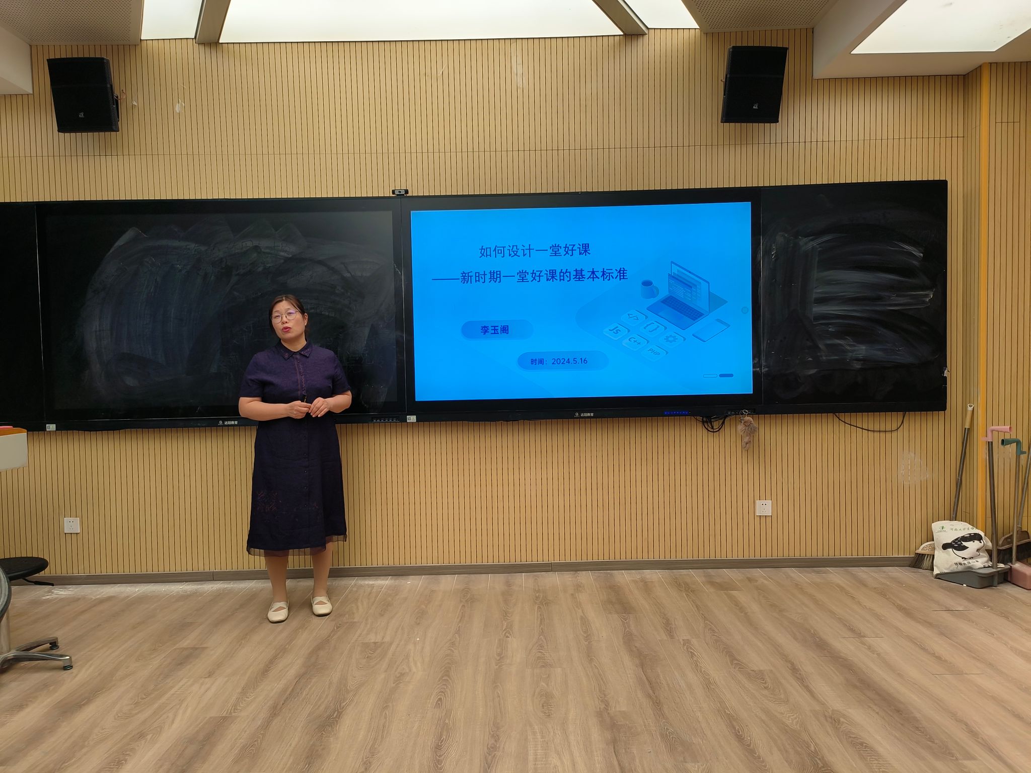 李玉阁以“如何设计一堂好课”为主题进行了精彩的分享。她结合个人教学经验和前沿教育理念,从课程设计的基本标准、课程知识体系的构建、课程思政的有机融入、跨学科思维的整合、智慧教学模式的创新、多元综合评价体系的构建等多个方面,系统深入的剖析了课程设计对于建设“两性一度”课程的重要性,并提出了多个创新性的教学方法和策略。